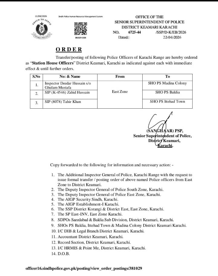 اسلام آباد(بولونیوز)اسلام آباد کے مختلف علاقوں میں مشترکہ گرینڈ کومبنگ سرچ آپریشنز کا سلسلہ جاری ہے۔پولیس کے مطابق سرچ آپریشنز میں 30 مشکوک افراد کو مزید جانچ پڑتال کے لیے متعلقہ تھانے منتقل کیا گیا ہے۔ سرچ آپریشنز میں ایک گاڑی، 33 موٹرسائیکلوں کو بھی مزید جانچ پڑتال کے لیے متعلقہ تھانوں میں منتقل کیا…