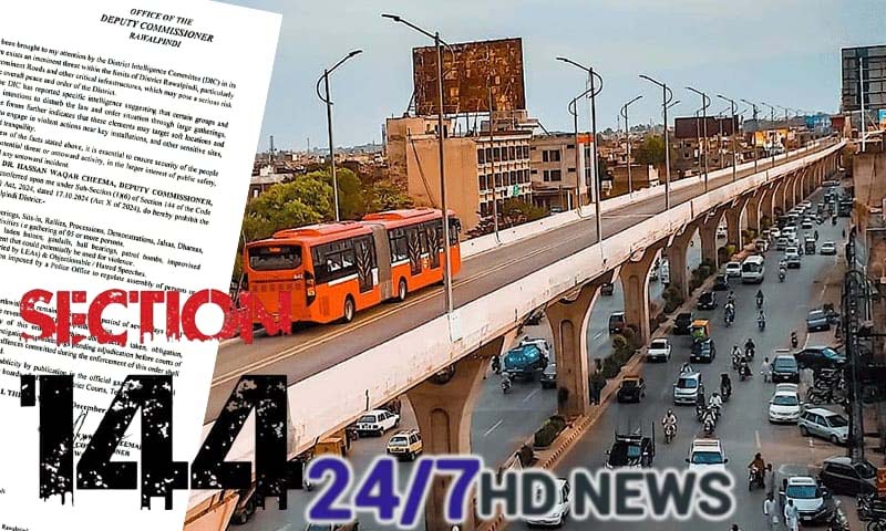 راولپنڈی(بولونیوز) شہر میں امن و امان کی صورتحال کے پیشِ نظر انتظامیہ نے دفعہ 144 میں توسیع کرتے ہوئے ہر قسم کے عوامی اجتماعات، ریلیوں اور چار سے زائد افراد کے اکٹھ پر پابندی برقرار رکھنے کا فیصلہ کیا ہے۔