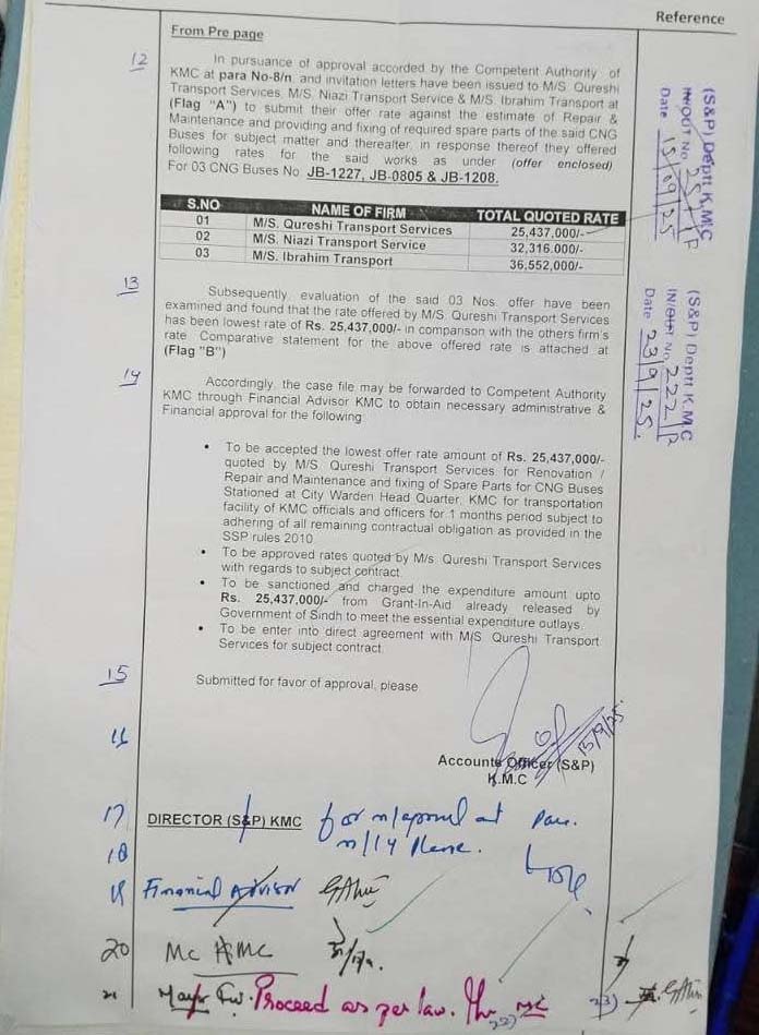 بسوں کی مرمت کی منظوری میئر کراچی اور میونسپل کمشنر کی جانب سے دی گئی تھی، جس پر شہری حلقوں میں شدید تنقید کی جا رہی ہے۔