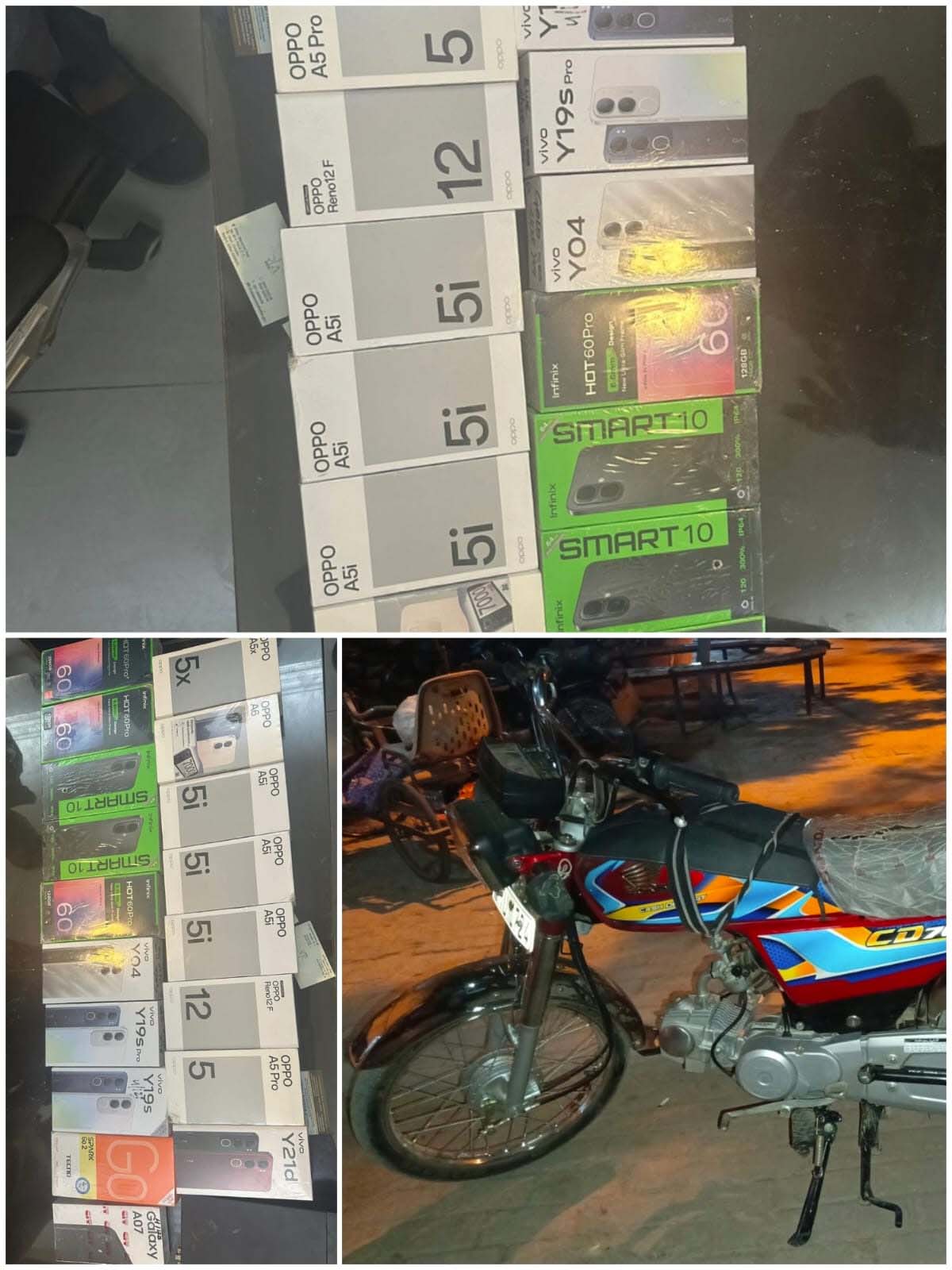 گرفتار ملزمان کے قبضے سے چھینے گئے موبائل فونز، ایک 9mm پستول، چار کارتوس اور ایک موٹر سائیکل برآمد ہوئی۔ مزید کارروائی کے دوران واردات میں استعمال ہونے والی واجد کی جیکٹ بھی برآمد کر لی گئی۔