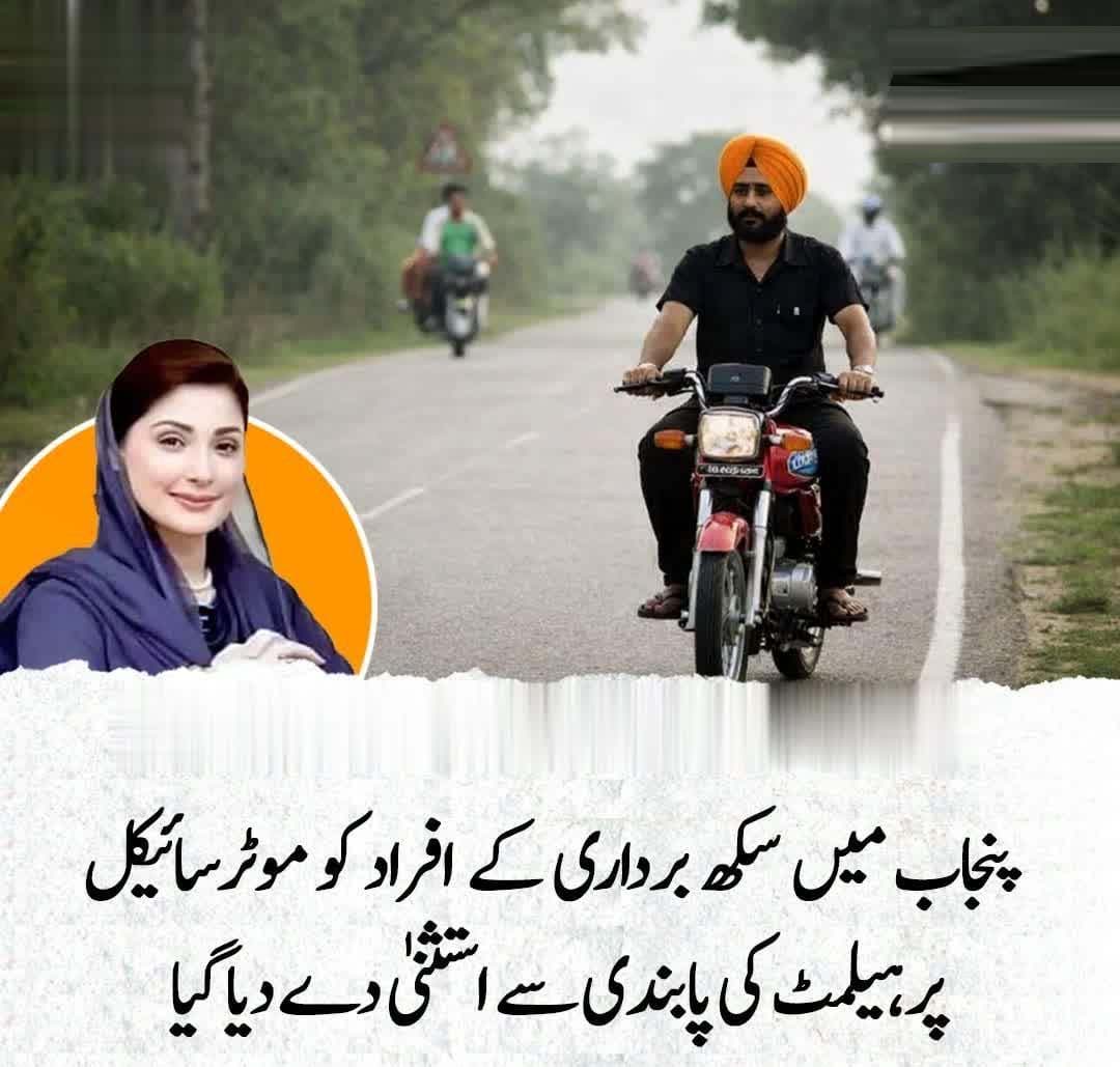 مریم نوازشریف کا اعلان، سکھ برادری کو پگڑی کی وجہ سے ہیلمٹ سے استثنیٰ