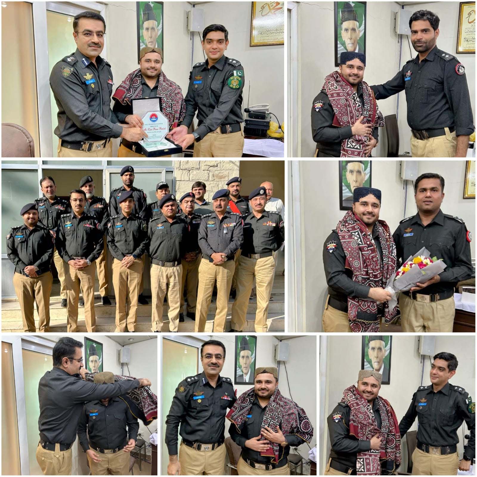 ایس ایس پی امجد احمد شیخ و دیگر پولیس افسران کی جانب سے ڈی ایس پی زین بلوچ کو کیماڑی پولیس سے الوداعی اور نئی تعیناتی کی مبارکباد دیتے ہوئے سندھ کی ثقافت اجرک ٹوپی، پولیس شیلڈ اور دیگر تحائفات دیئے گئے ۔