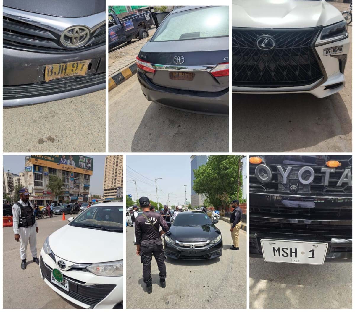 کراچی(بولونیوز)ٹریفک پولیس، ضلعی پولیس اور سی پی ایل سی کی مشترکہ اسنیپ چیکنگ مہم جاری ہے۔ اس دوران بغیر نمبر پلیٹ، چھپی ہوئی یا غیر قانونی نمبر پلیٹس والی گاڑیوں کے خلاف سخت کارروائی کی جا رہی ہے، جس میں جرمانے عائد کرنے اور گاڑیاں ضبط کرنے کے اقدامات شامل ہیں۔