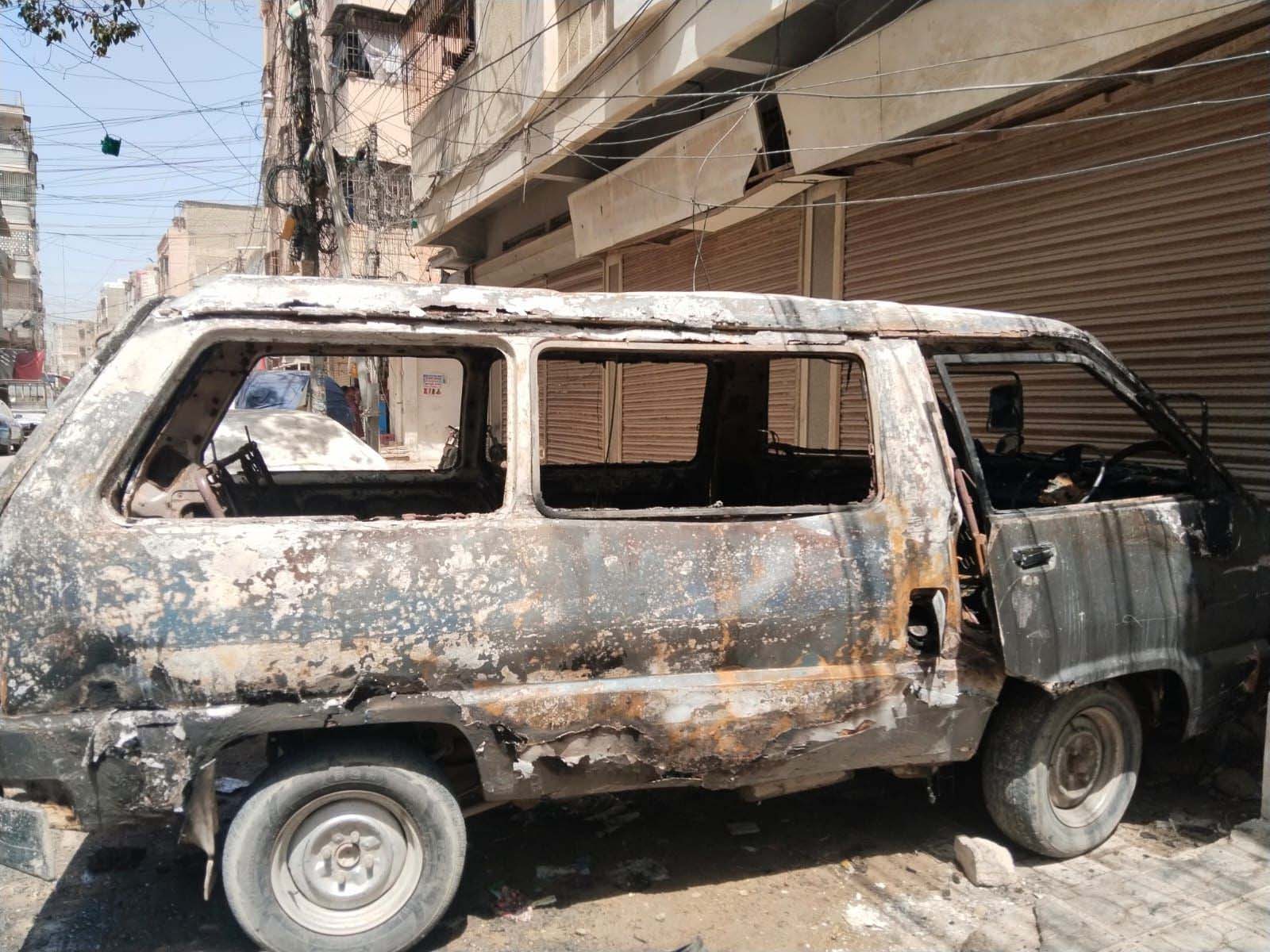 ناظم آباد پاپوش میں شارٹ سرکٹ سے اسکول وین میں آگ، بچے محفوظ