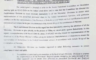 وفاقی ملازمتوں میں صوبائی کوٹہ پر سختی سے عملدرآمد کا فیصلہ