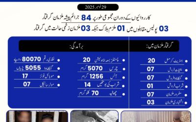 ڈسٹرکٹ ایسٹ پولیس کی کارروائی،84 ملزمان گرفتار، ہتھیار اور منشیات برآمد